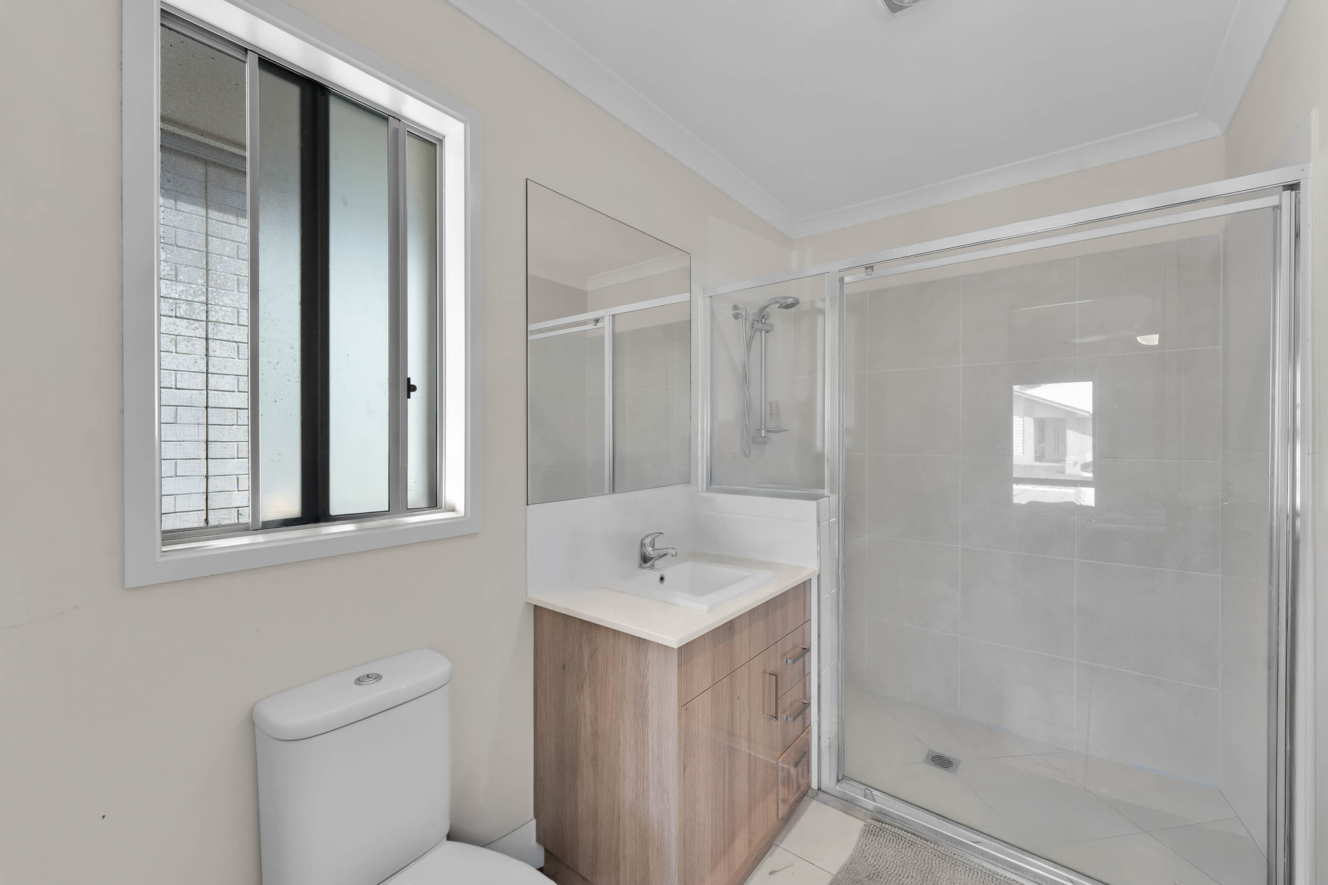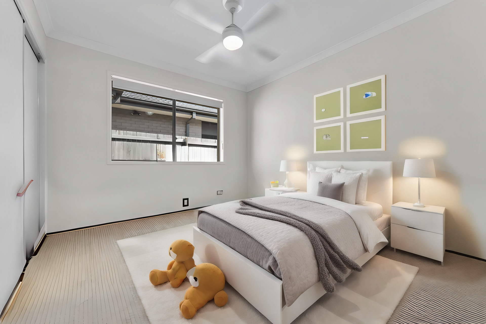 All remaining bedrooms are well-sized, each featuring built-in robes for efficient storage. Ceiling fans in each room enhance air circulation, contributing to the overall comfort. These bedrooms are conveniently positioned around the main bathroom, which includes both a shower and a bathtub. A separate toilet adds to the functionality, making it easy for multiple family members to use the space simultaneously without disruption.