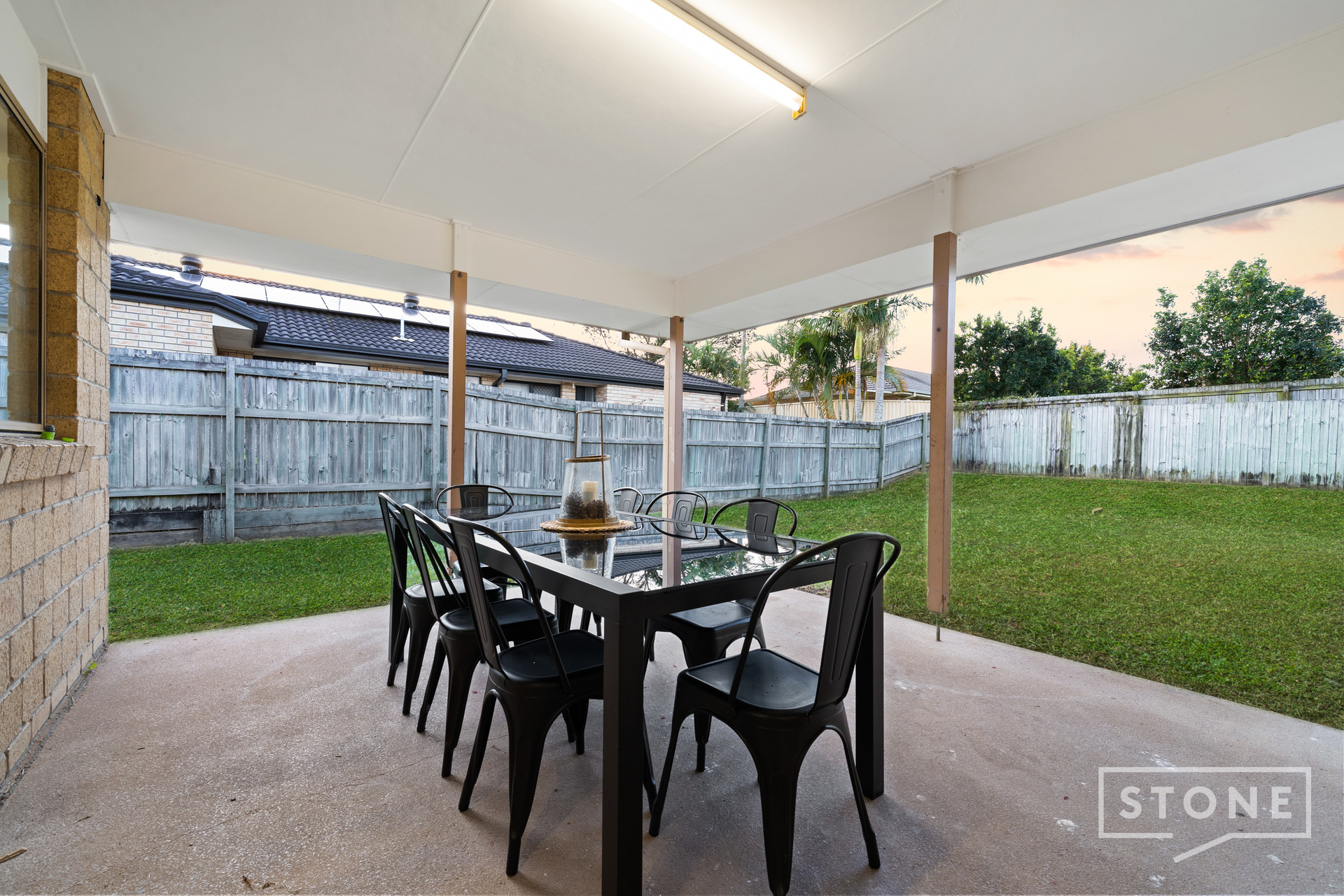 fully fenced rear yard there is enough space for the kids and pets to safely play and room for the pool.