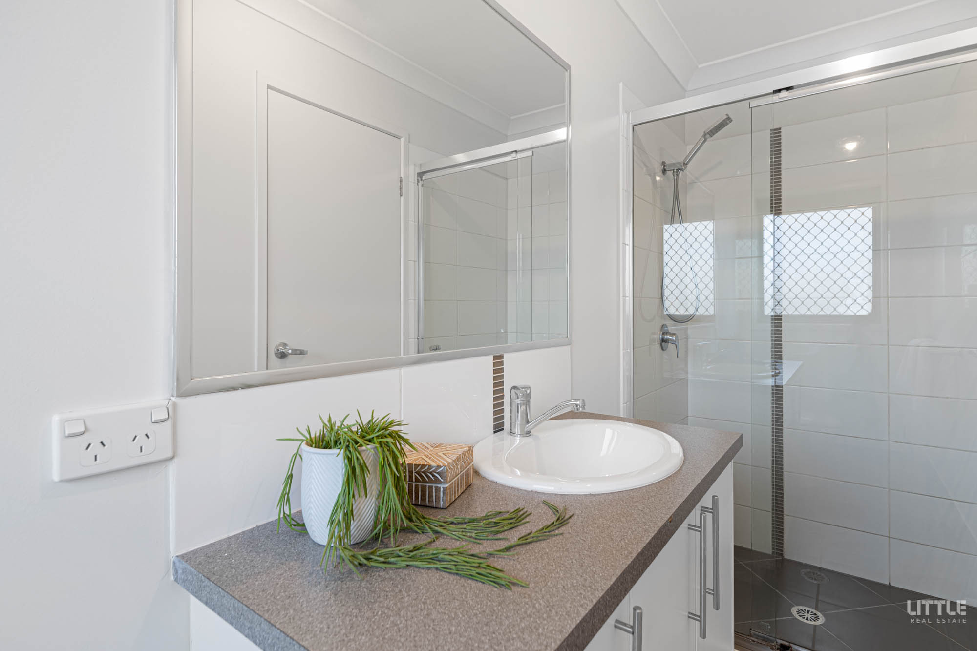 Featuring: Bedrooms: All bedrooms have built-in robes and ceiling fans. The master bedroom includes an ensuite with a shower, toilet, and single vanity. Living: The kitchen, living, and dining areas flow seamlessly, with air conditioning providing year-round comfort. Kitchen: Well-equipped with an oven, gas stovetop, overhead rangehood, and ample storage-ideal for meal preparation. Bathrooms: The main bathroom features a bathtub, shower, toilet, and single vanity. An additional toilet is conveniently located downstairs. Courtyard: The living area opens onto a fully fenced courtyard, offering a private outdoor space for relaxation or entertaining. Additional Amenities: Single lock-up garage, additional car space, separate laundry room, ceiling fans throughout, and a water tank.